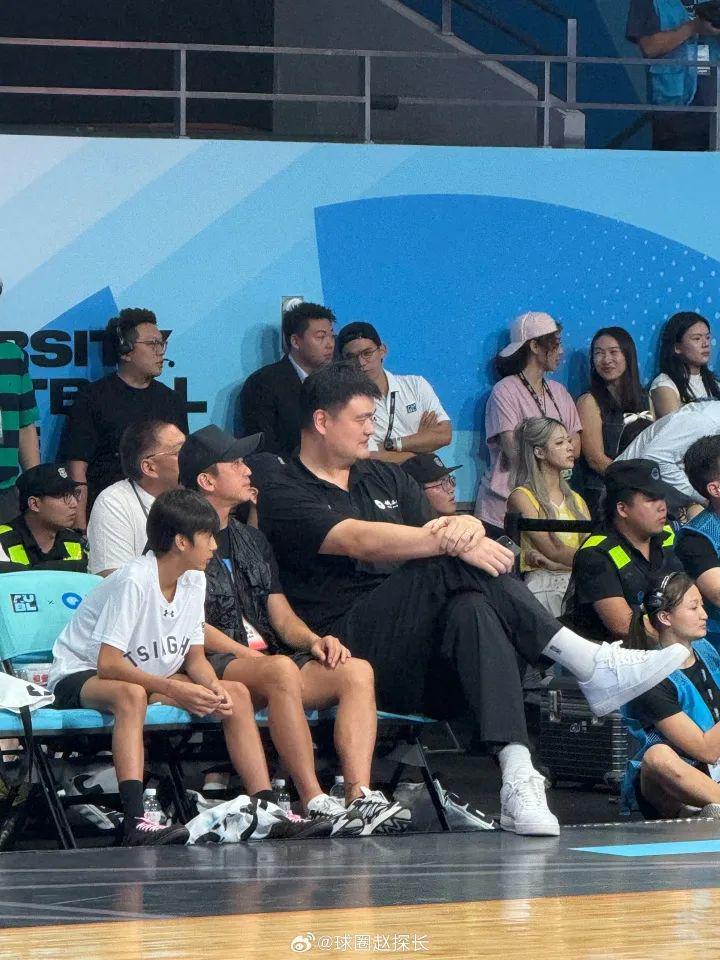 姚明、邓超、蔡崇信、何猷君观战AUBL决赛